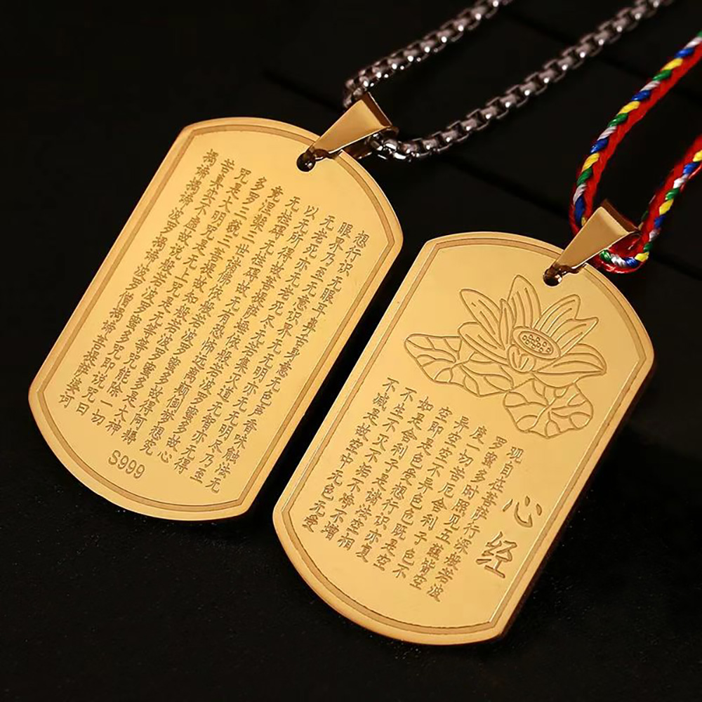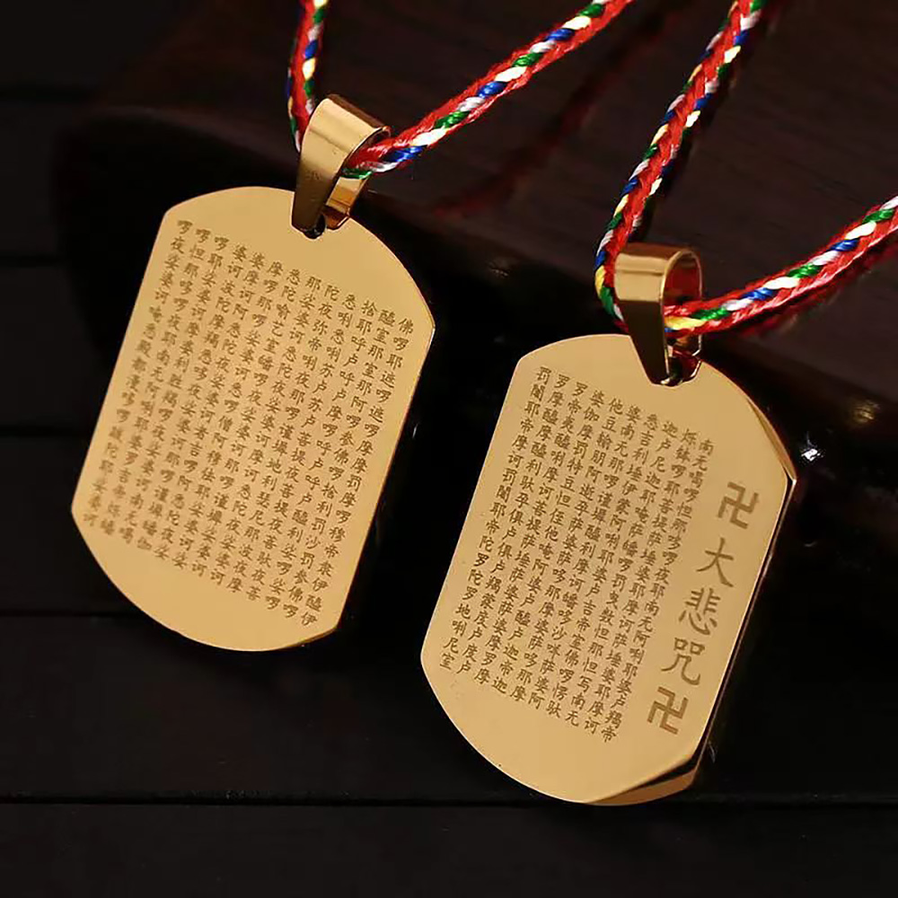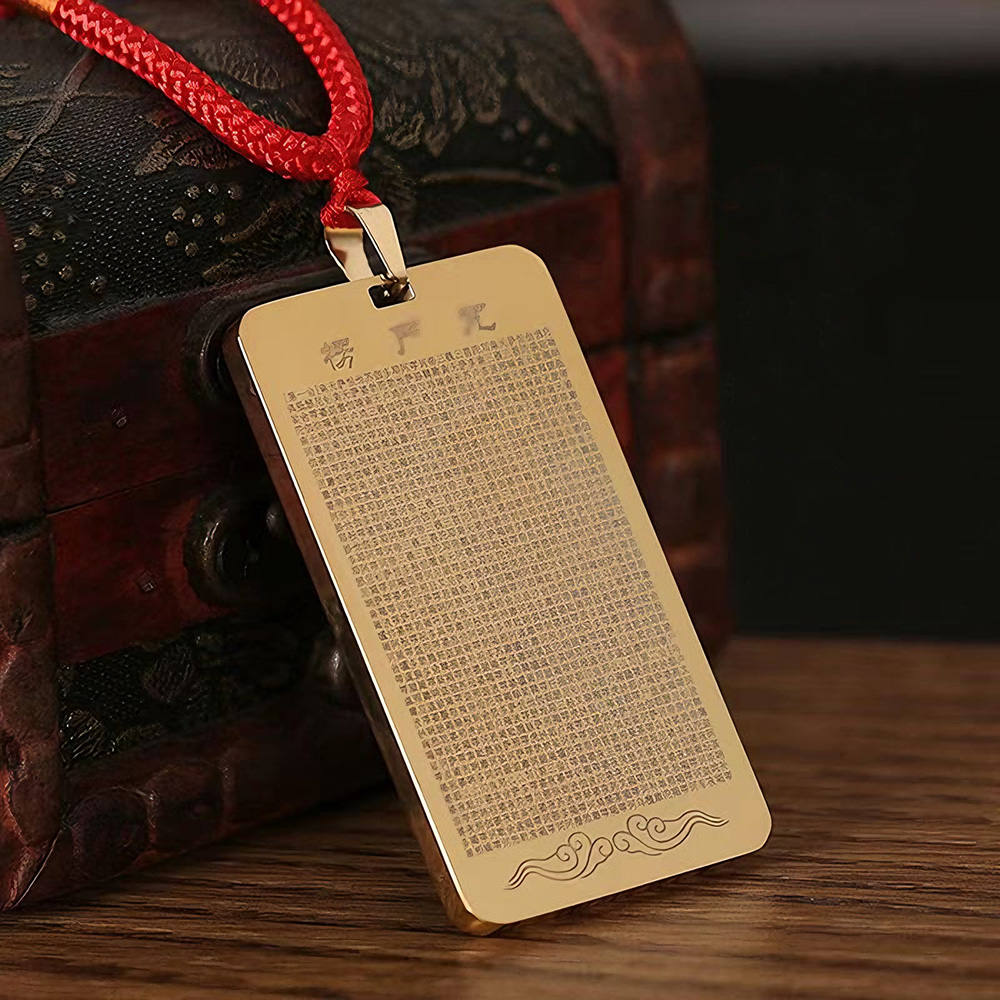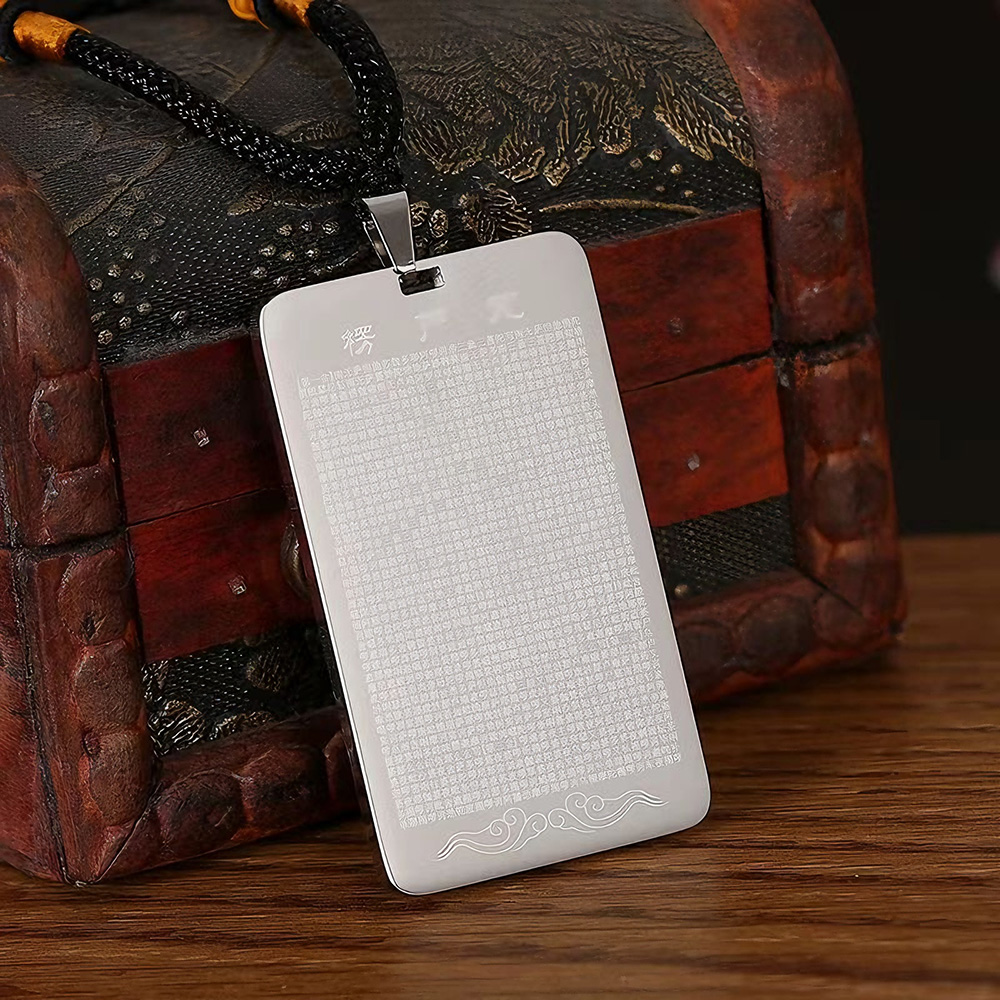 Crafted with polished, durable metals, the intricate engraved script (a classic passage of Eastern philosophical legacy) and refined design blend understated luxury with profound symbolic depth. Worn close to the body, it serves as a tangible reminder of inner balance — a subtle, elegant link to the quiet wisdom of ancient Eastern traditions.